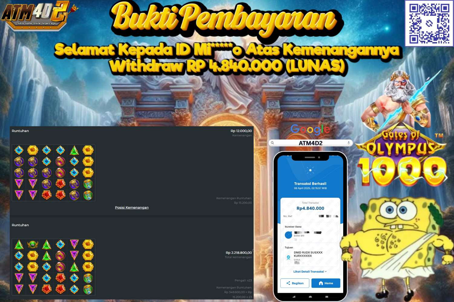 ATM4D2 dikenal sebagai situs terpercaya yang selalu menghadirkan pengalaman bermain slot online yang aman, fair, dan berlisensi resmi. Di sini, kami tidak hanya sekadar memberikan janji, tapi bukti nyata berupa slip kemenangan yang dapat Anda lihat secara langsung.