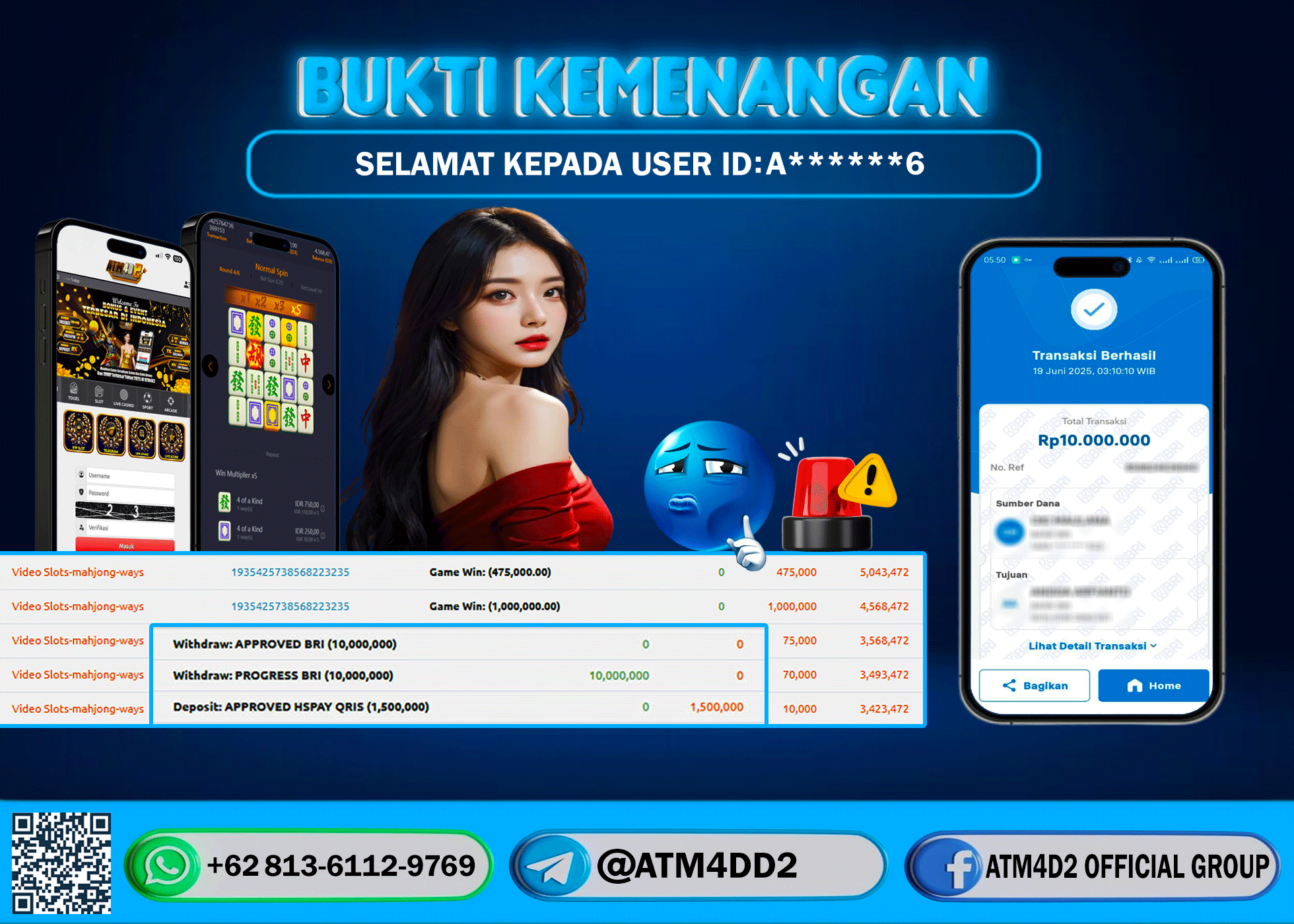 ATM4D2 dikenal sebagai situs terpercaya yang selalu menghadirkan pengalaman bermain slot online yang aman, fair, dan berlisensi resmi. Di sini, kami tidak hanya sekadar memberikan janji, tapi bukti nyata berupa slip kemenangan yang dapat Anda lihat secara langsung.