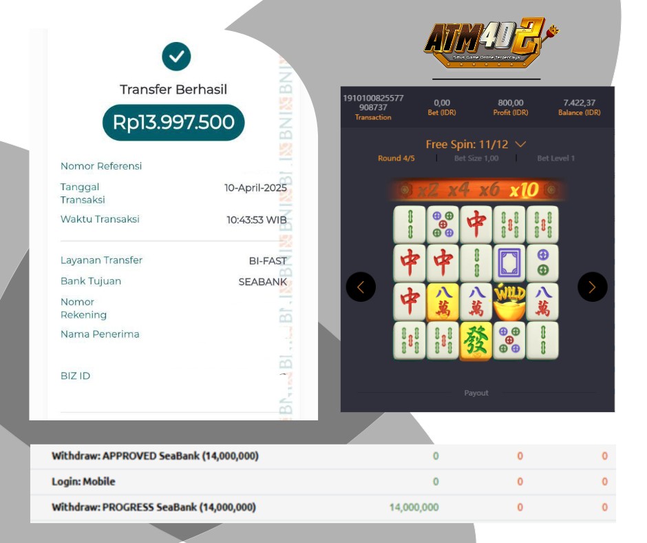 ATM4D2 dikenal sebagai situs terpercaya yang selalu menghadirkan pengalaman bermain slot online yang aman, fair, dan berlisensi resmi. Di sini, kami tidak hanya sekadar memberikan janji, tapi bukti nyata berupa slip kemenangan yang dapat Anda lihat secara langsung.