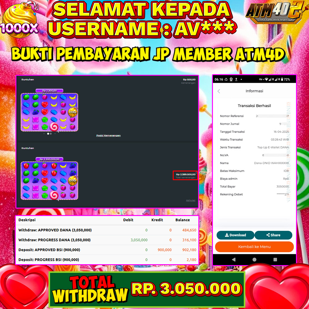 Satu lagi Bukti JP dan Pembarayan Sah Dan Dapat Dipertanggung Jawabkan, WD Berapapun Pasti Dibayar Lunas Hanya di Situs ATM4D2. Hati Hati Kepada Pihak Pihak Yang Mengatas namakan Pihak ATM4D2 Untuk Melakukan Penipuan.