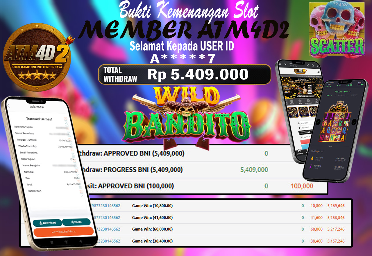 ATM4D2 dikenal sebagai situs terpercaya yang selalu menghadirkan pengalaman bermain slot online yang aman, fair, dan berlisensi resmi. Di sini, kami tidak hanya sekadar memberikan janji, tapi bukti nyata berupa slip kemenangan yang dapat Anda lihat secara langsung.