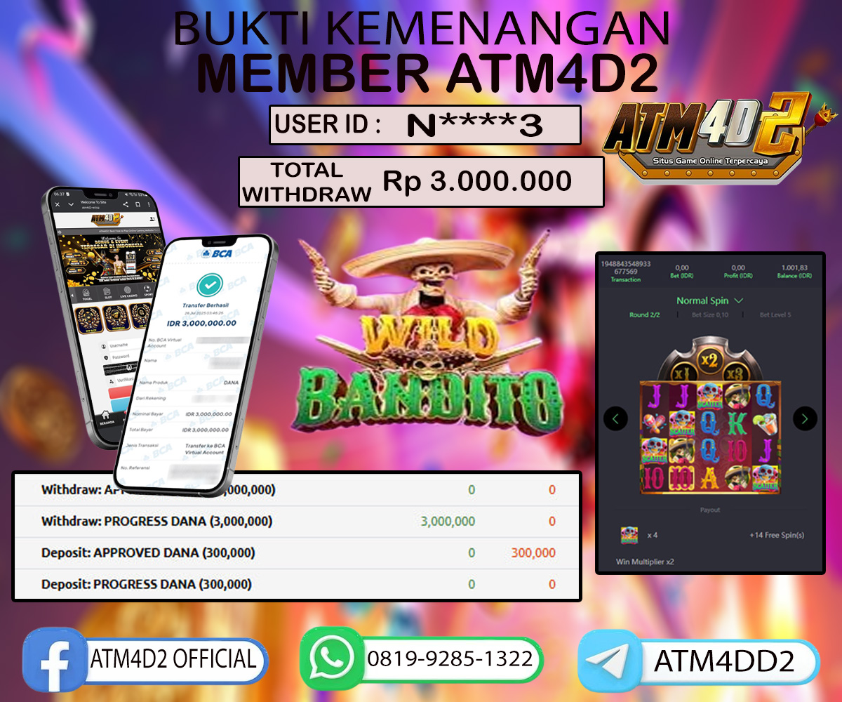 ATM4D2 dikenal sebagai situs terpercaya yang selalu menghadirkan pengalaman bermain slot online yang aman, fair, dan berlisensi resmi. Di sini, kami tidak hanya sekadar memberikan janji, tapi bukti nyata berupa slip kemenangan yang dapat Anda lihat secara langsung.