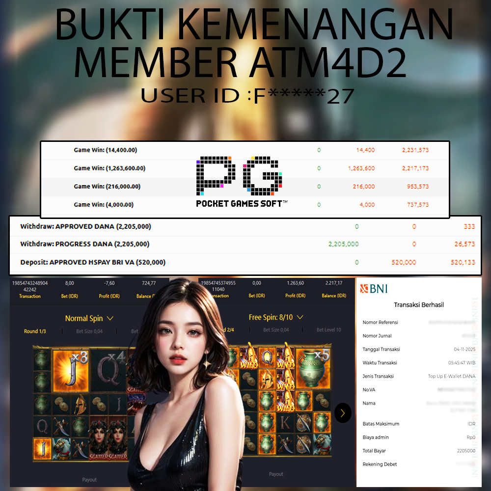 ATM4D2 dikenal sebagai situs terpercaya yang selalu menghadirkan pengalaman bermain slot online yang aman, fair, dan berlisensi resmi. Di sini, kami tidak hanya sekadar memberikan janji, tapi bukti nyata berupa slip kemenangan yang dapat Anda lihat secara langsung.