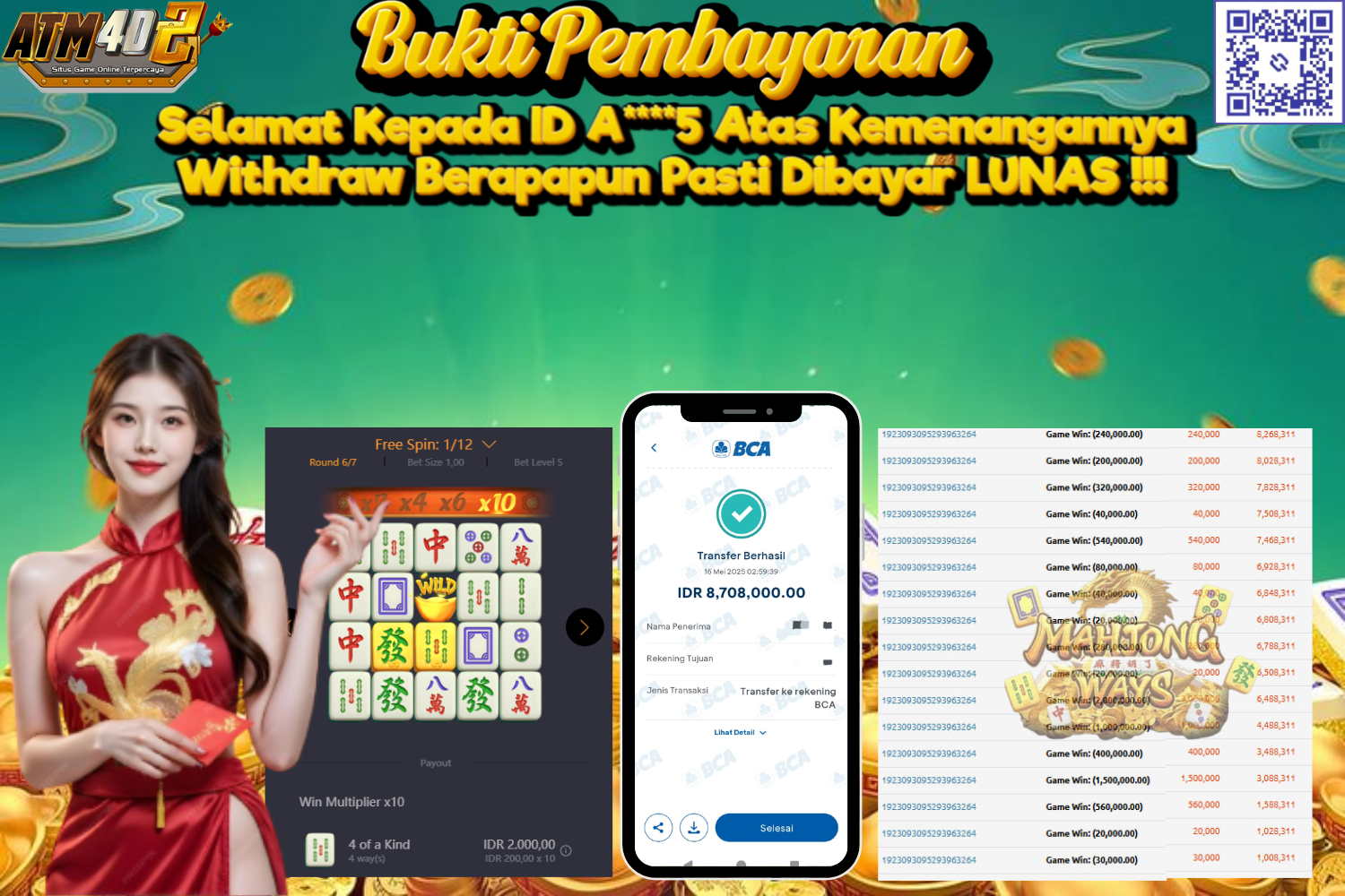 ATM4D2 dikenal sebagai situs terpercaya yang selalu menghadirkan pengalaman bermain slot online yang aman, fair, dan berlisensi resmi. Di sini, kami tidak hanya sekadar memberikan janji, tapi bukti nyata berupa slip kemenangan yang dapat Anda lihat secara langsung.