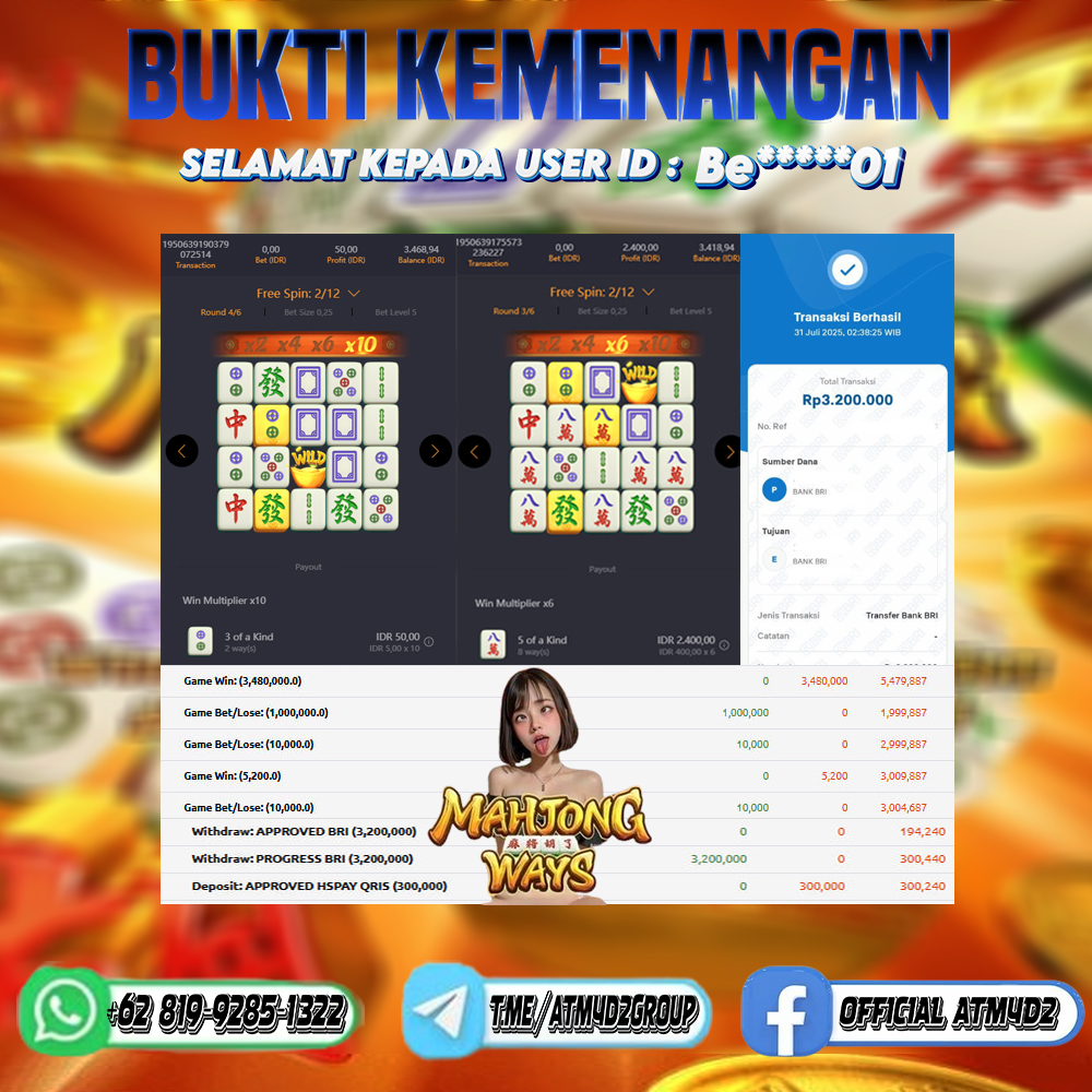 JACKPOT SLOT MAHJONG WAYS 31 JULI 2025 , Jackpot Slot Gacor, Kemenangan Slot, Bukti Kemenangan Slot, Kemenangan Slot PG SOFT, Menang Slot online, Slot Gacor, Situs Aman Terpercaya, WD Berapapun Pasti DI Bayar Tuntas, Maxwin Slot Online.