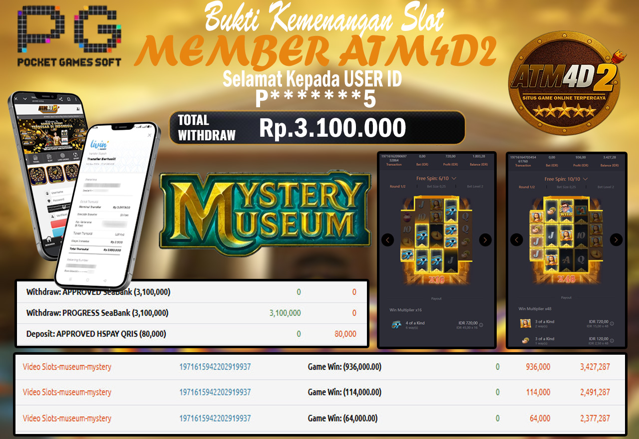 ATM4D2 dikenal sebagai situs terpercaya yang selalu menghadirkan pengalaman bermain slot online yang aman, fair, dan berlisensi resmi. Di sini, kami tidak hanya sekadar memberikan janji, tapi bukti nyata berupa slip kemenangan yang dapat Anda lihat secara langsung.
